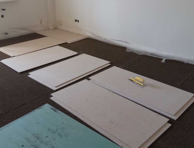 Гипсоволокно KNAUF представляет собой компактный материал, произведенный методом прессования смеси гипса и переработанной бумаги. Обладает устойчивостью к влаге благодаря обработке специальными водоотталкивающими составами.